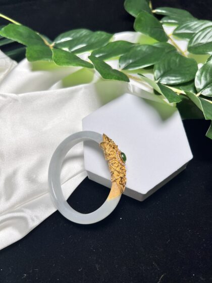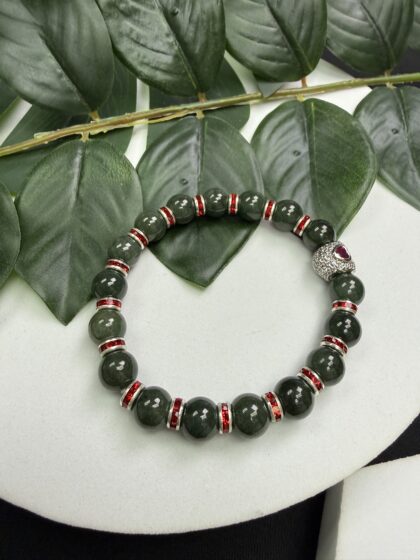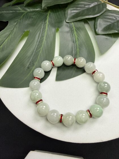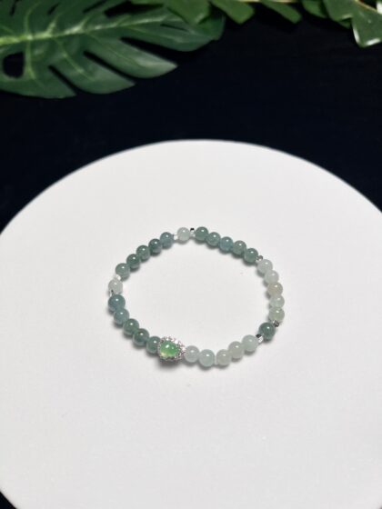 Ice-Type Green Leaf Jadeite Silver Bracelet
