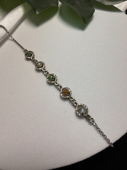 Tricolor Cabochon Jadeite Silver Bracelet