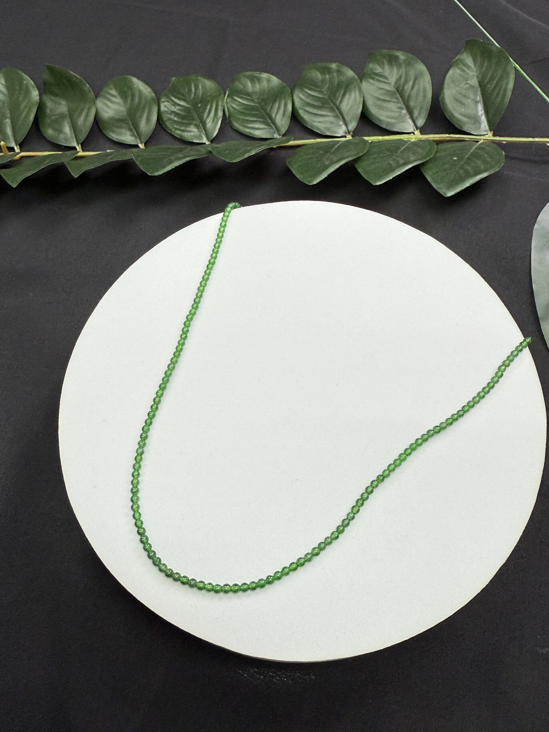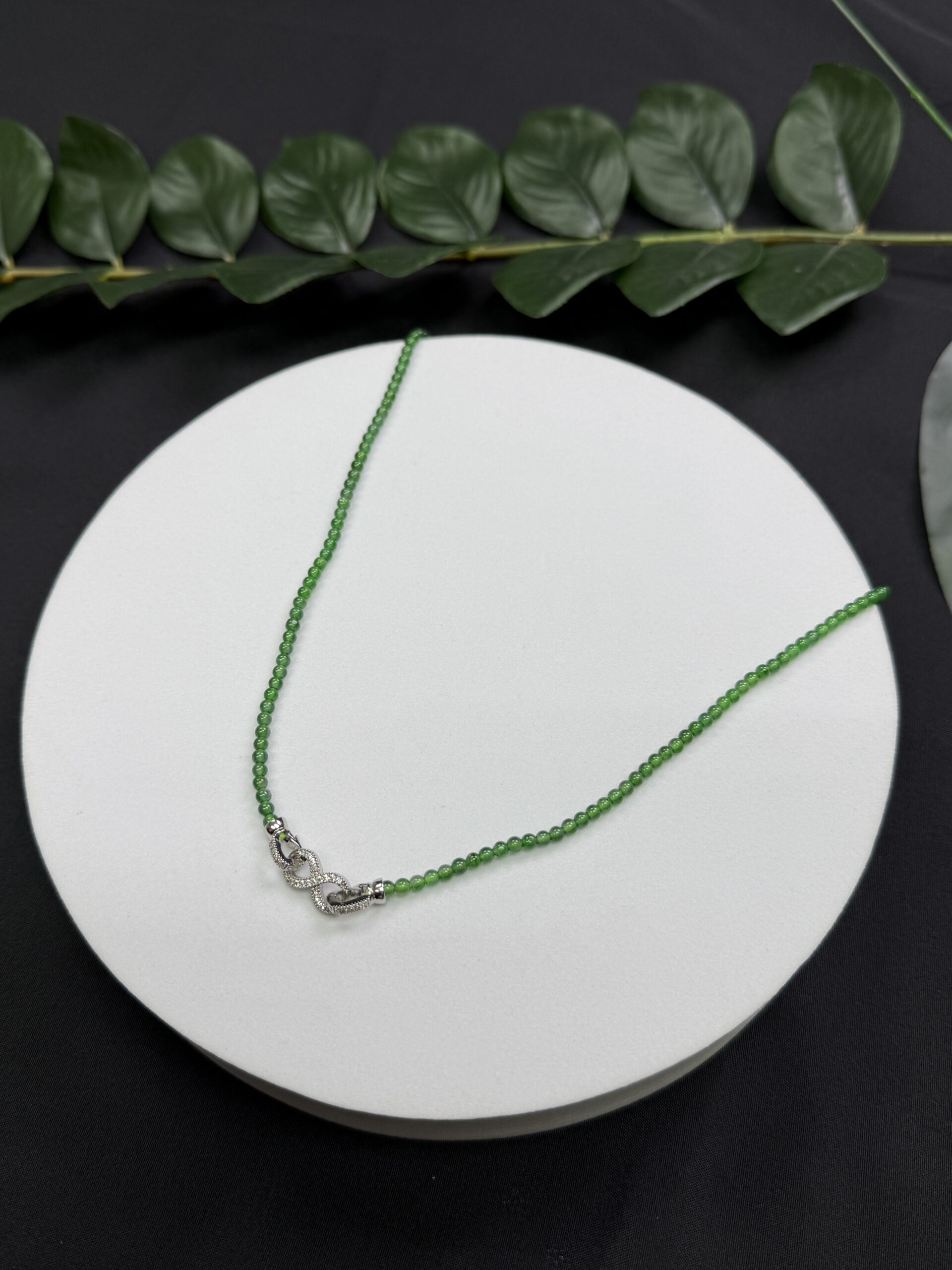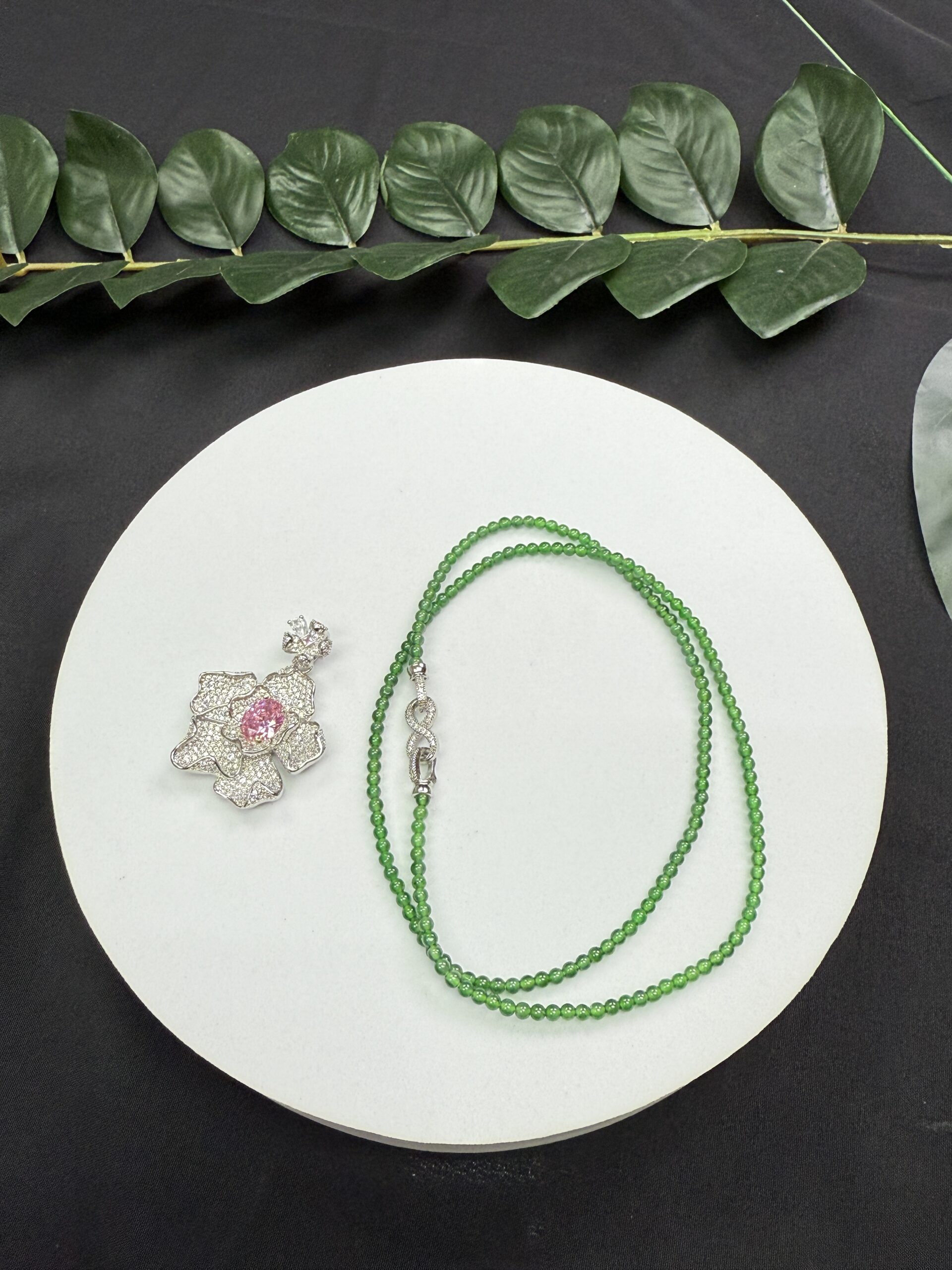 Composition: 3mm ice-type green beads (187) and a free gift of lab-grown pink sapphire cabochon pendant in 18k gold-plated inlaid zircon orchid-shaped frame measuring 32.2×42.2×6.5mm (1)